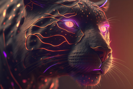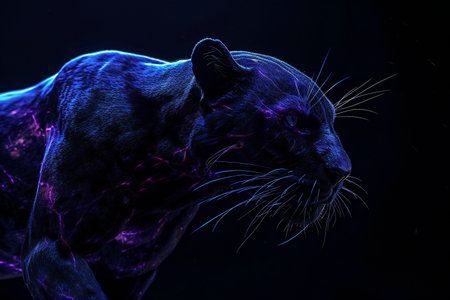 Panther in the dark with neon lights.