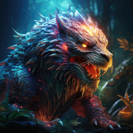 inematic 3d image dragon with burning eyes spines made with generative AI