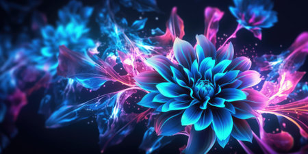Beautiful abstract neon light night photo floral design background banner. beautiful Generative AI AIG32