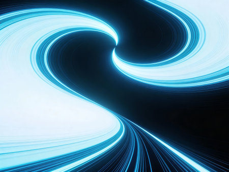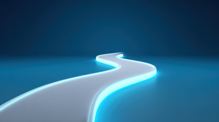 Winding Blue Neon Light Trail on a Dark Background, an Abstract Futuristic Illustration.