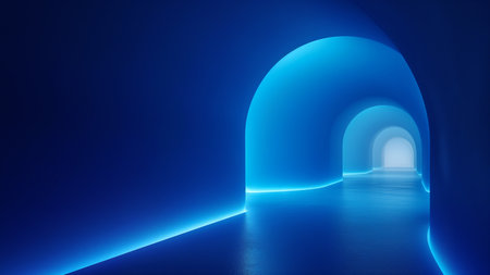 Futuristic blue tunnel corridor with glowing lights.