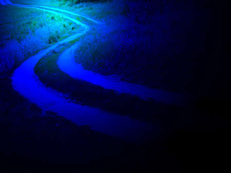 Winding Blue River of Light Flowing Through Night Landscape, Blur Motion Lines , Fantasy Digital art