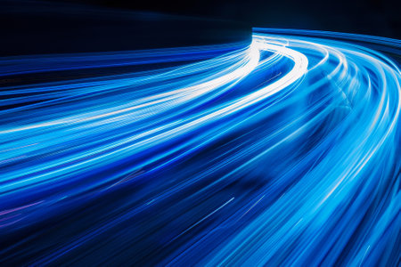futuristic blue light streaks depicting speed through fiber optic lines against a clean background