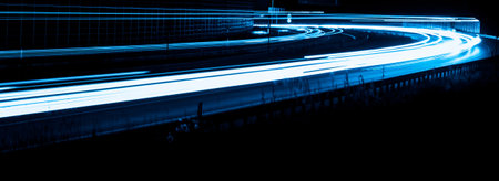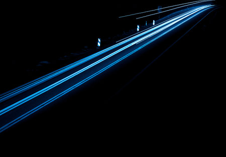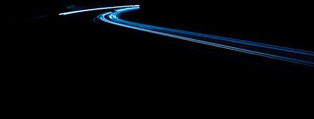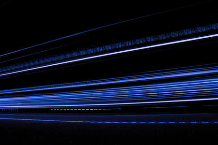 Blue light trails on the road at night. Long exposure photo.