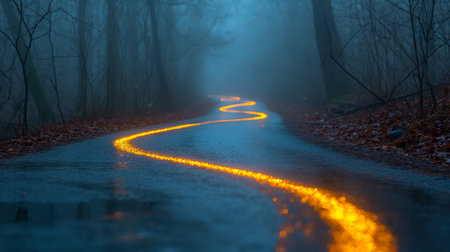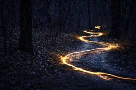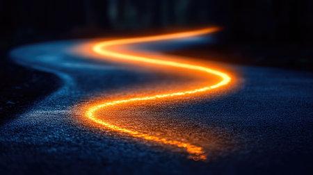 Glowing trails of light winding through the darkness AI generated