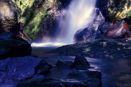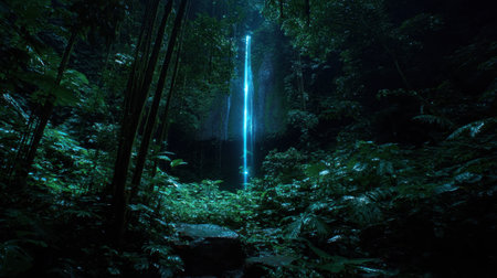 Beautiful waterfall nature scenery of colorful at a night deep tropical fantasy jungle