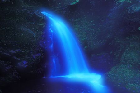 illuminated waterfall Lucky with blue light at night. Slovakia.