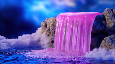 Clean and colorful waterfall concept with pink source and brilliant blue background