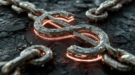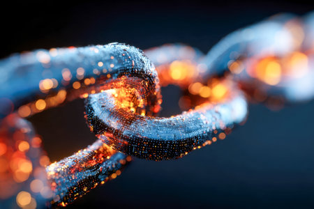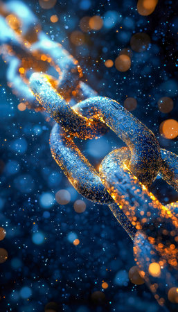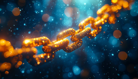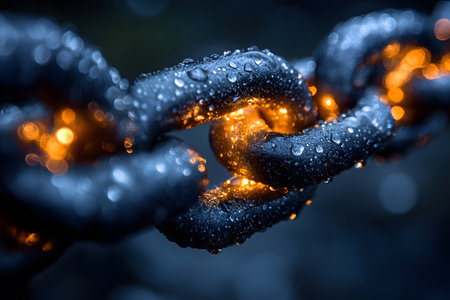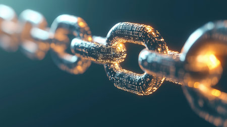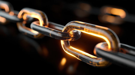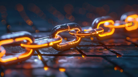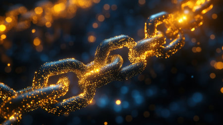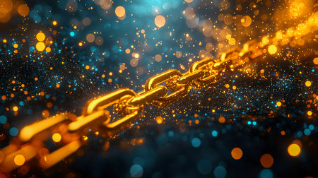 Glowing chain links symbolize connection and strength set against a bokeh background Tech and security.