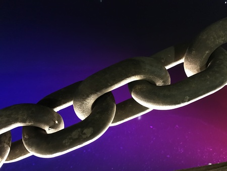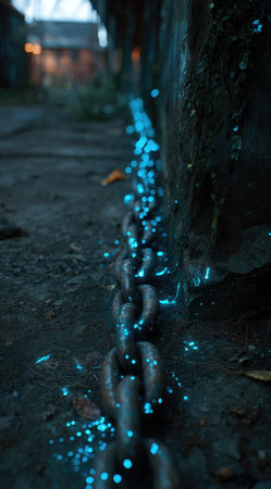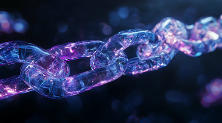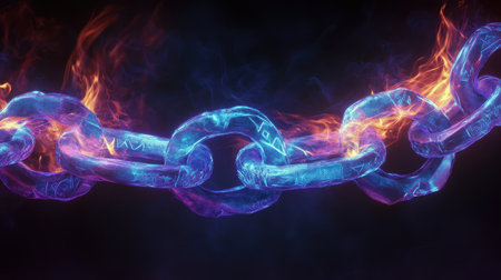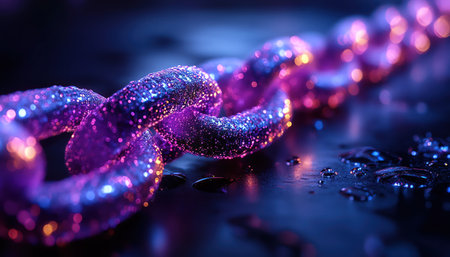 Translucent chain links glow with blue and purple hues symbolizing connection and unbreakable bonds.