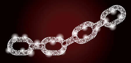 Glowing crossing mesh chain with glowing spots on a dark red gradiented background. Vector model based on chain icon, and with intersected lines. Sparkle carcass hatched mesh chain.