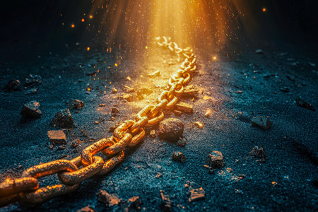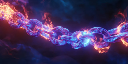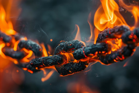 Symbolic fiery chains depict strength and resilience in adversity with unwavering determination