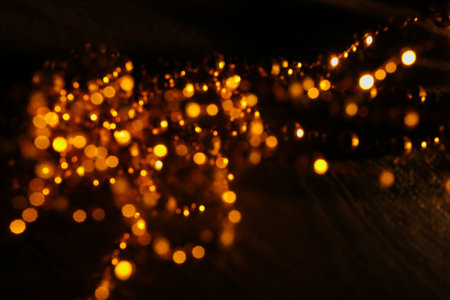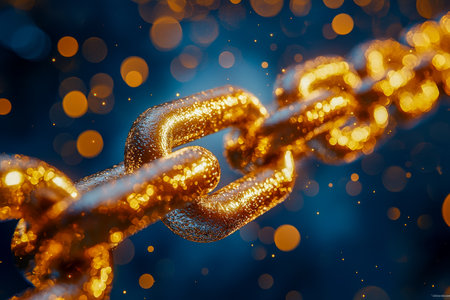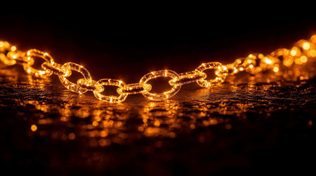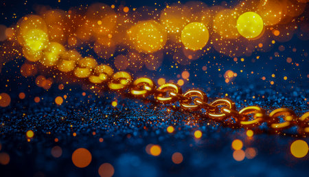 A luminous golden link chain shimmering amidst a backdrop of twinkling bokeh lights, creating an elegant and festive atmosphere suitable for luxury or