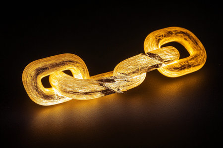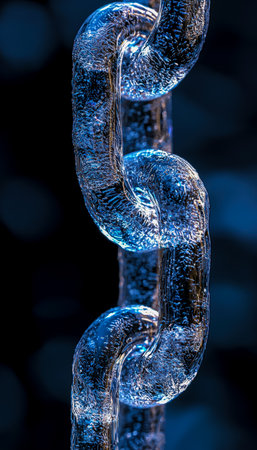 Interconnected glass links form a chain symbolizing strength unity and digital network connectivity.