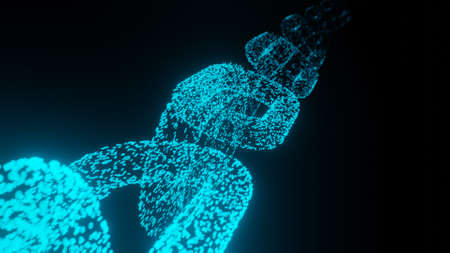 Close up 3d render of a metallic chain with glowing lights and a blurred background effect