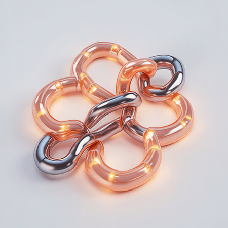 A shimmering metallic link in sharp focus, surrounded by vibrant, out-of-focus light spots creating a sense of motion and modern elegance.