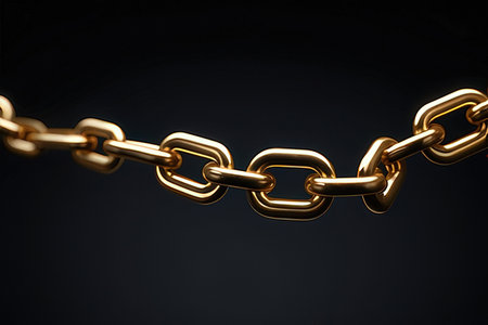 A detailed shot of a luminous metal link, its reflective surface catching light, set against an unobtrusive, softly blurred backdrop for versatile usa