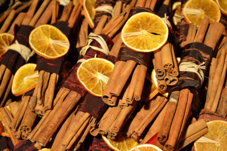 Cinnamon sticks with dry orange