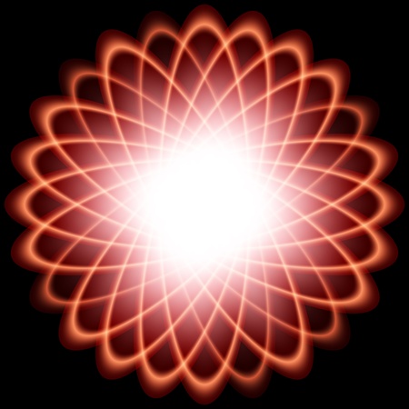 A glowing and transparent abstract flower pattern on a black background.
