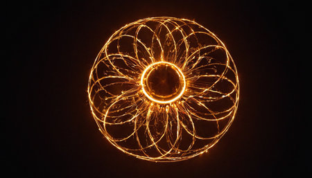 This abstract image features a mesmerizing spiral pattern adorned with glowing orange lights against a dark background, ideal for creative and artistic projects.