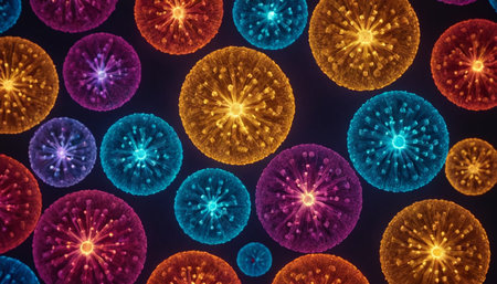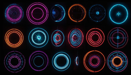 A striking array of colorful circular dashboard elements set against a dark background, showcasing modern design and technology visuals.