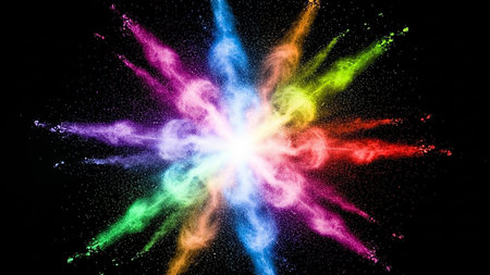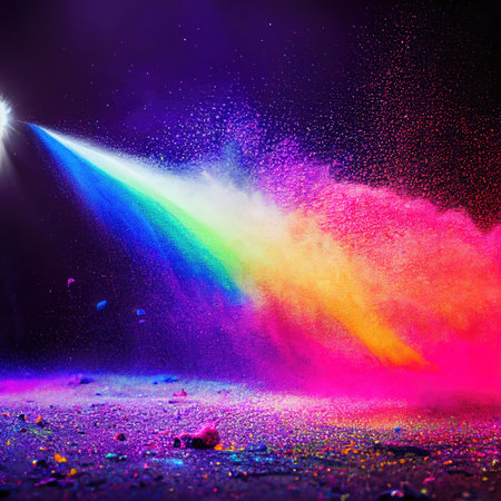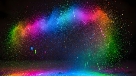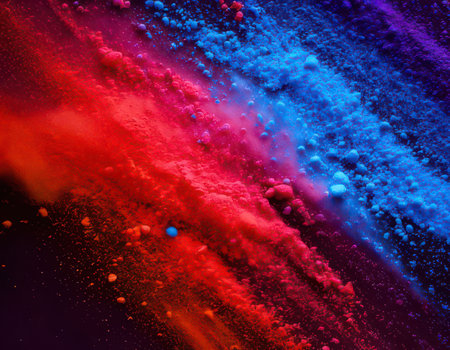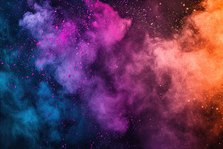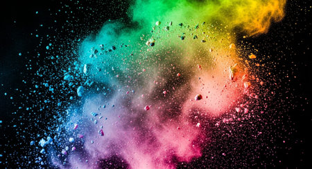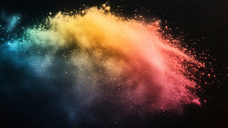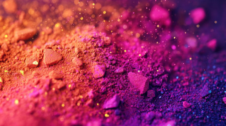 Beautiful blend of colorful powder particles scattered on a surface, creating a vibrant abstract art background, perfect for artistic or creative projects.