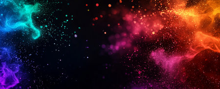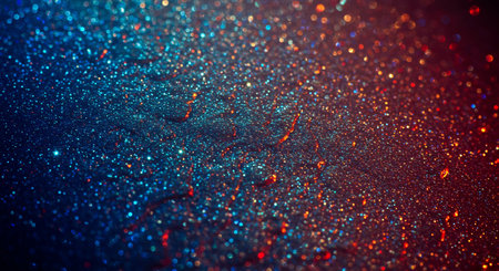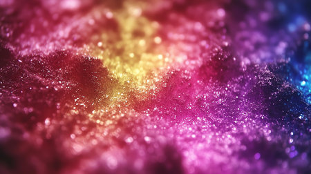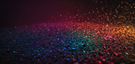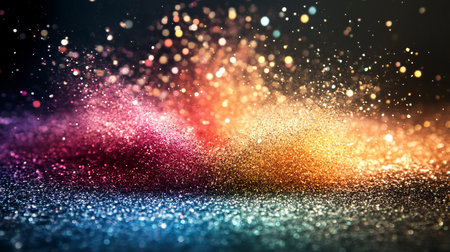 Sparkling glitter texture with colorful particles on a dark background for festive designs