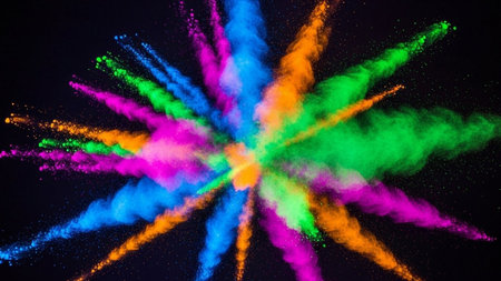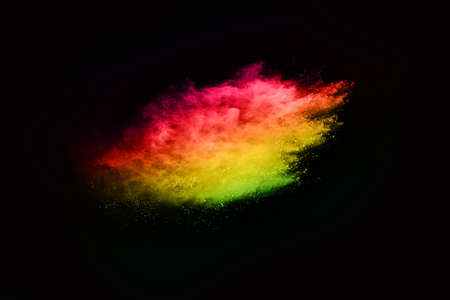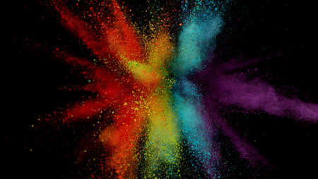 Explosion of colored powder, isolated on black background. Abstract colored background