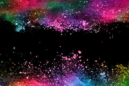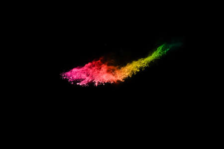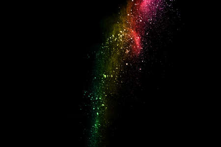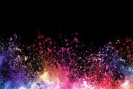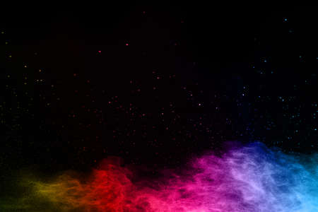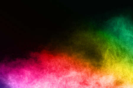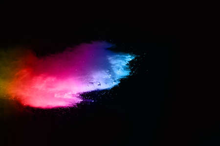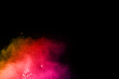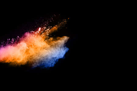 abstract colored dust explosion on black background.abstract colored powder splatted background