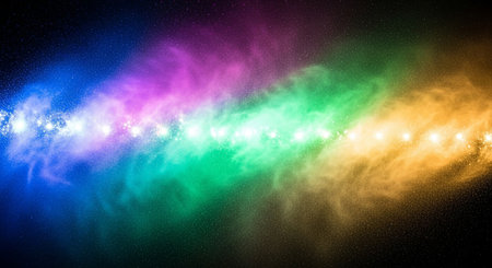 Colorful smoke clouds and shiny glitter lights bokeh abstract fantasy background