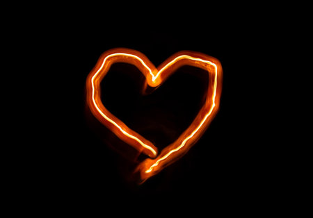 Heart shaped neon sign illuminated in darkness