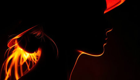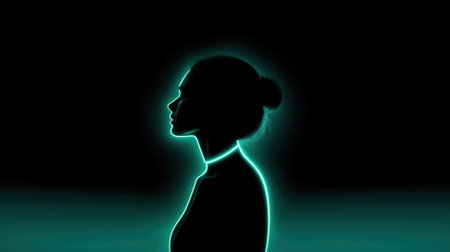 An artistic silhouette portrait featuring a captivating neon glow effect against a dark background, showcasing the unique shapes and contours of the subject's profile, evoking a sense of intrigue and creativity.