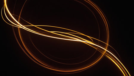 Dynamic Stream of Golden Light Streaks Creating an Abstract Pattern in a High-Energy Modern Setting