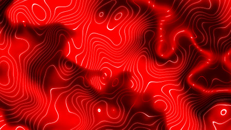 Stylized neon contour lines in glowing red and white, forming abstract topographic waves and paths.