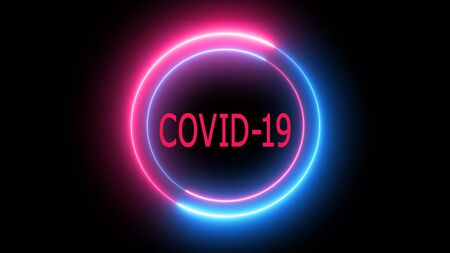 textual warning coronavirus, text animation coronavirus on a dark background with neon circles.