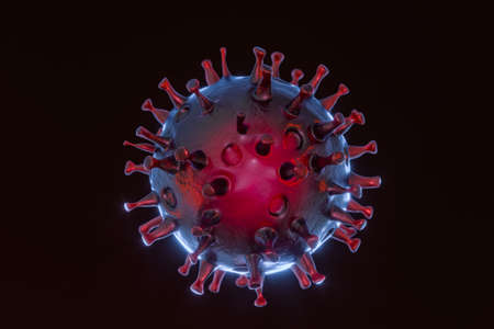 Abstract Virus Strain Model On black Background. Corona virus quarantine. Virus Pandemic Protection Concept. Red filter