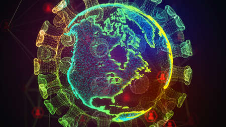 Holographic coronavirus COVID-19 rotating in virtual space