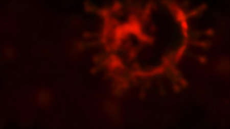 Close-up blurred virus cell. Red background medical concept.