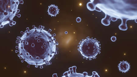3D Image of Flu Coronavirus Covid-19 background. Concept with disease cell as a 3D renderer.