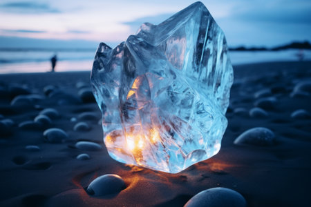 Close-up of a crystal on the beach at sunset. Selective focus.