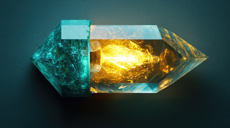 A stunning image of a sparkling crystal emitting warm light, featuring a unique shape and vibrant colors. The background enhances the gem's beauty and allure.