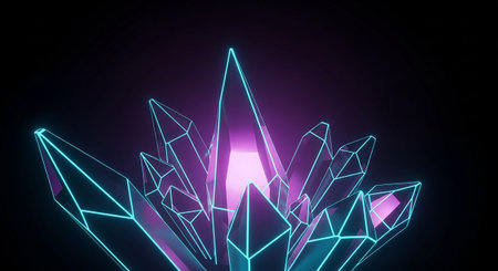 A mesmerizing abstract background inspired by crystalline formations, featuring floating, semi-transparent geometric shards softly glowing with an iridescent neon spectrum. The futuristic composition blends cyber aesthetics with digital minimalism.