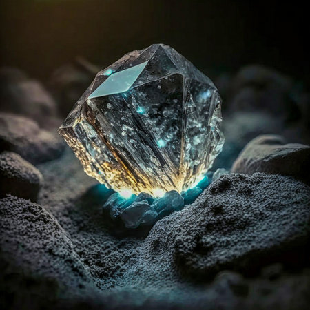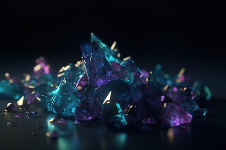 A glowing gemstone collection illuminates the dark, vibrant background generated by artificial intelligence