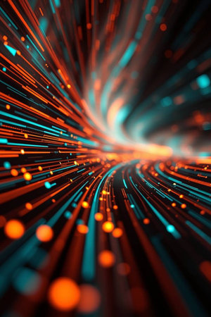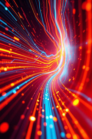 Colorful light trails in motion, vibrant neon streaks creating an energetic and dynamic abstract background