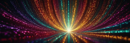 Light streaks and reflections fill a tunnel, giving an impression of speed and innovation in a modern setting.