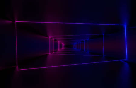 3d rendering of abstract futuristic tunnel corridor with glowing neon lights.