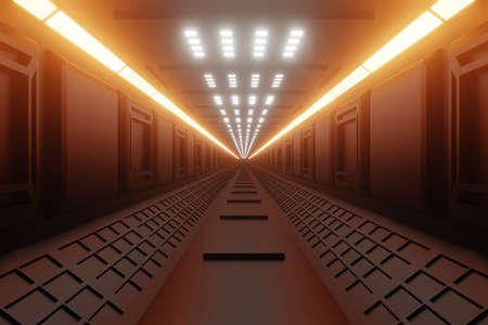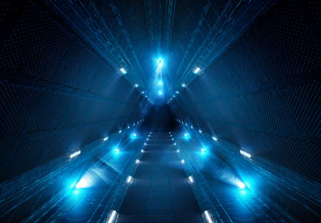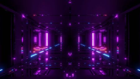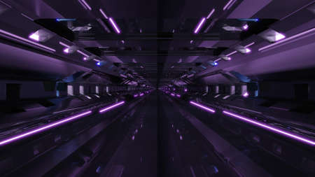 3D rendering of Futuristic scifi tunnel corridor with neon lights