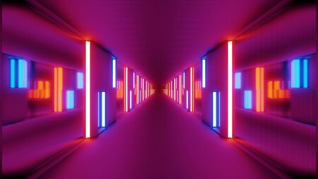 Futuristic corridor with colorful neon lights. 3D rendering.