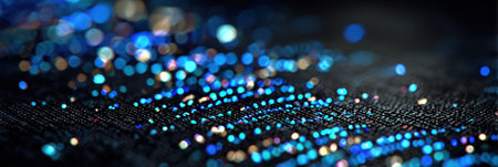 Intricate patterns of blue and black shimmer create a mesmerizing visual effect, highlighting the beauty of light and color interplay in a dark background.