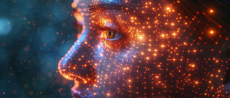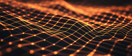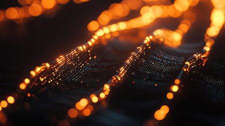 A stunning abstract image featuring glowing orange lights that create a mesmerizing pattern, set against a dark blurred background, ideal for artistic and technological themes.